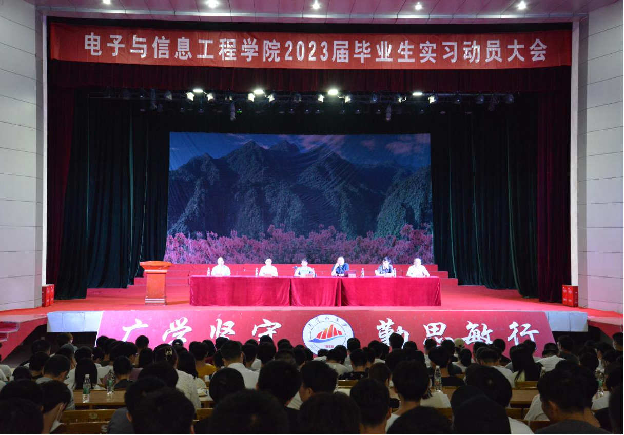 6月12日下午,电子与信息工程学院2023届毕业生实习暨毕业设计动员大会在井冈山大学学生会堂顺利召开。院党委书记黄郁南,院长罗文浪、副书记万建新、副院长龙满生、副院长唐卫东、各科室负责人、2019级辅导员和班主任及600余名拟毕业生参加了本次会议。会议由院党委书记黄郁南主持,并邀请了北京龙誉教育科技有限公司董事长王朝军出席。