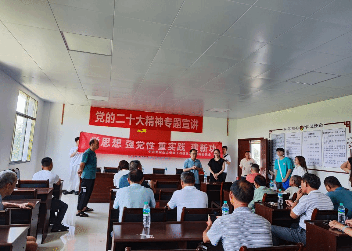 为践行为人民服务的宗旨,提升党员的思想觉悟,加强党员的党性修养和社会责任感,6月29日上午,电子与信息工程学院赴结对共建单位青原区菱塘村委展开“井小信来了----智慧助老”志愿服务活动,向菱塘村的老年人传授智能手机使用技巧,以帮助他们更好地适应现代科技生活。此次活动由学院电子第二党支部书记尹凯老师带队,10余名师生党员共同参与。