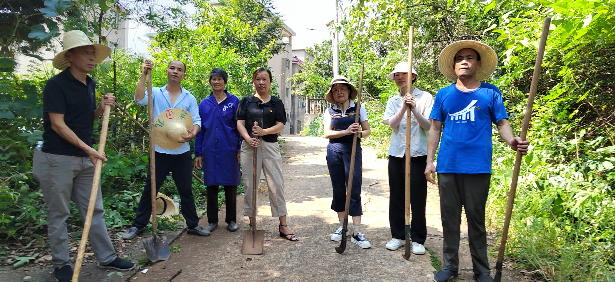 入夏以来,炎热多雨的天气使农村道路两旁杂草丛生,不但成为蚊虫滋生的场所,而且由于村道狭窄,会车时杂草遮住视线,给居民出行造成了较大的安全隐患。活动中,党员和村干部们充分发扬不怕苦、不怕累,不怕脏的精神,在2个多小时挥汗如雨的“奋战”中,利用砍刀、铁锹、大扫把等工具对乡村道路两侧的杂草、荆棘等进行了全面清理和矮化处理。全村道路焕然一新,道路视野拓展了,村容村貌美化了。