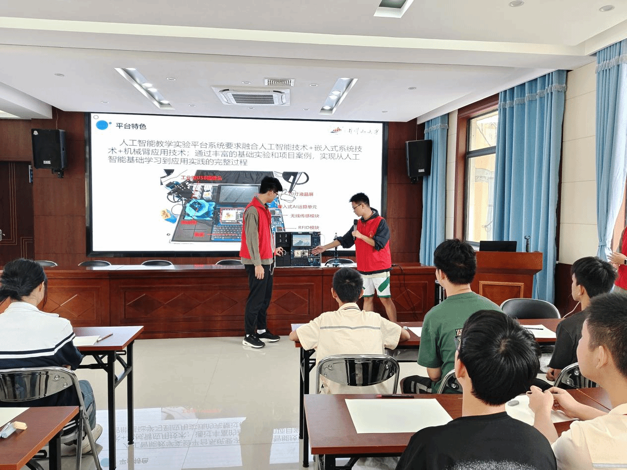 在活动中,志愿者们首先通过科普宣传,向特教学校的孩子们展示了人工智能技术在教育和日常生活中的应用。然后,他们现场演示包括机械臂在内的AI智能实验产品,这些产品能够响应语音指令、识别数字图像,完成仓库货物分拣等精细动作。孩子们亲眼见证了科技的魅力,纷纷踊跃参与现场的实操演练。此外,志愿者们还通过互动绘画的方式,激发学生们对未来科技世界的想象,点燃他们对AI计算机学习的热情。