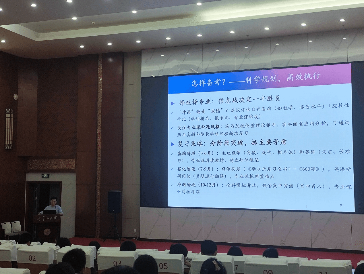 动员大会上,党委副书记罗书嵩对2025年学院考研情况进行总结,深度分析历年考研数据,并详细介绍了学院精心打造的考研支持体系,从学习资料到辅导课程,从学习空间到心理咨询,全方位助力学生备考。