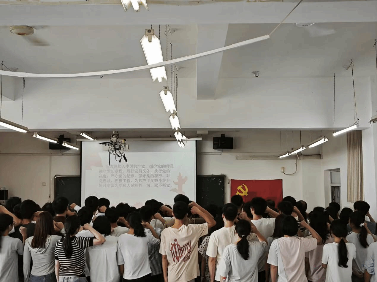 活动开场,奏唱国歌,那熟悉的旋律瞬间让现场庄重起来。“我志愿加入中国共产党,拥护党的纲领……随时准备为党和人民牺牲一切,永不叛党。”学院党委组织员张丹带领全体 2025届毕业生党员重温入党誓词,党员们高举右拳,面向党旗庄严宣誓,在铮铮誓词中重温入党初心,坚定理想信念,为未来的奋斗之路注入了强大的精神动力。