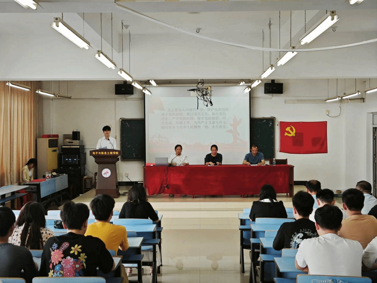 为了加强毕业生党性教育、爱校荣校教育,引导毕业生党员坚定理想信念,发挥先锋模范作用。5月19日下午,电子与信息工程学院在 10B301 教室举办2025 届毕业生党员集体政治生日会。学院党委书记黄郁南、党委组织员、各党支部书记和全体毕业生党员共同参与,活动由学院党委副书记罗书嵩主持。