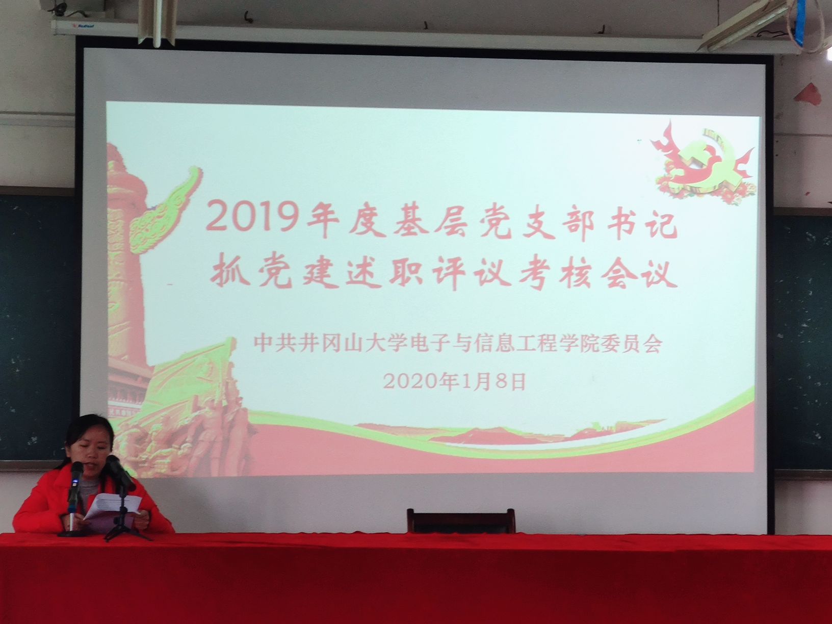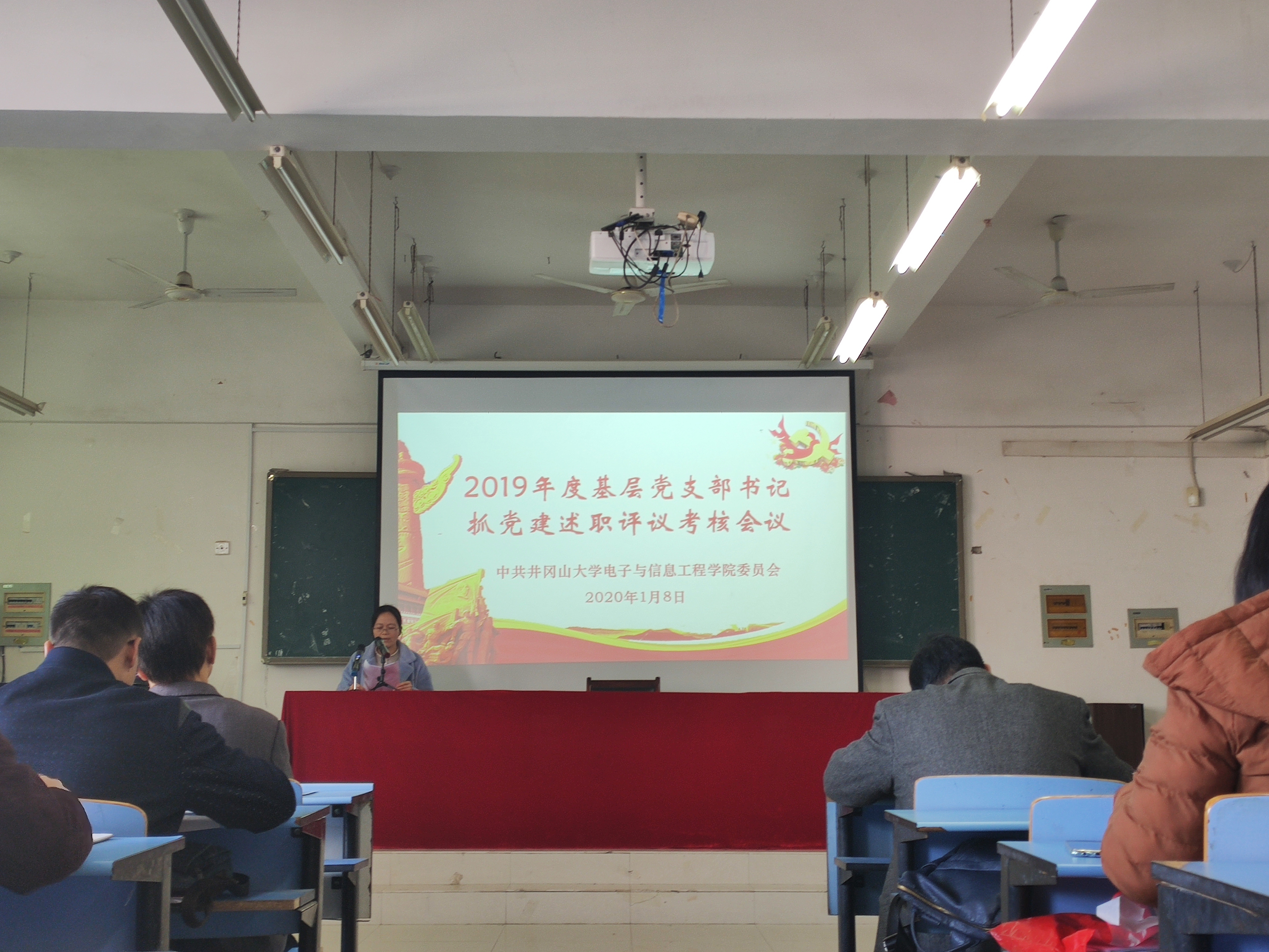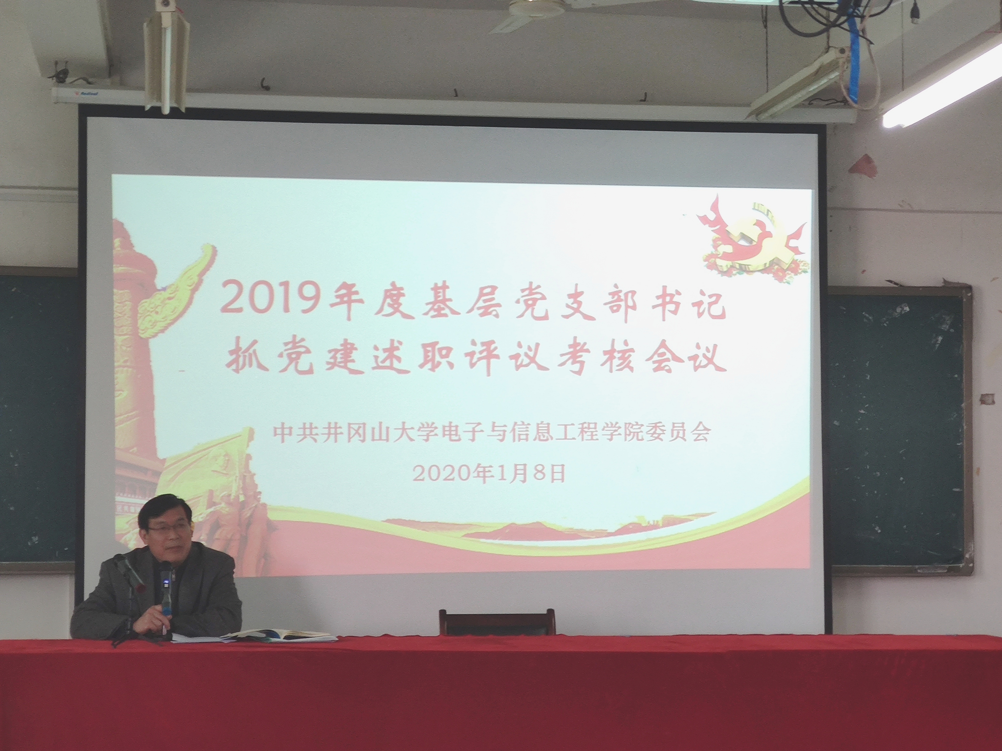 1月7日下午,电子与信息工程学院召开2019年度党支部书记抓党建工作述职报告会。参加此次述职大会的有学院党委班子成员、各支部书记和全体在校的师生党员。会议由学院党委副书记万建新主持。