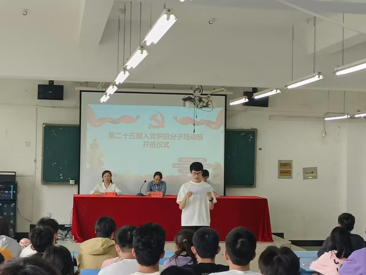 开班典礼上,学员代表22电信3班梁云鹏发言,他回顾了伴随自身成长历程不断深刻的入党初心和愈发强烈的入党意愿,表示一定严格遵守学习纪律、把握学习机会,坚持在思想上、行动上以党员标准严格要求自己,做勇担民族复兴大任的时代青年。专职组织员介绍了本次培训班教学计划、纪律要求和考核条件。