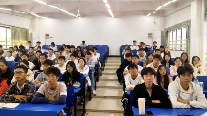 为增强理论学习的生动性与实效性,主讲人通过专题视频直观呈现全会精神的实践内涵,同时分享了两组典型事迹:青年科研团队攻坚克难、突破芯片技术壁垒;大学生志愿服务队依托信息技术赋能乡村振兴。一个个鲜活案例生动诠释了当代青年“敢为、敢闯、敢干、敢首创”的奋斗姿态,帮助同学们将宏观政策转化为可感、可知、可行的青春实践方向。