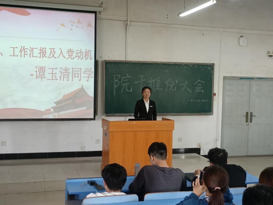大会开始,在主持人廖俊涛的发言引导下,7位被推优人员依次上台发表演讲,进行自我评述。每位同学围绕思想、学习、工作、生活等方面进行客观的描述,他们的演讲真挚且富有感染力,给在场的同学留下了深刻的印象。