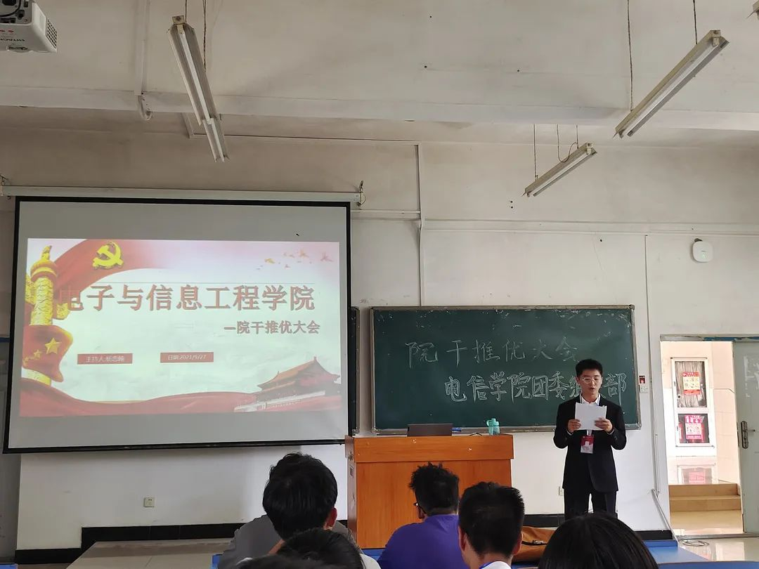 为保持党组织的青春与活力,电子与信息工程学院于2021年9月27日举行了2021-2022学年第一学期入党推优大会。本次大会全程由组织部负责人杨忠翰主持,主席团助理吴惟锐,班维越以及全体团员身份的部门负责人,院干参加本次会议。