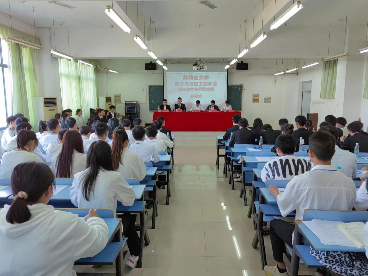 2022年10月22日下午,电子与信息工程学院第三次学生代表大会在10栋B301隆重召开。出席本次会议的有学院党委副书记万建新,学院团委副书记、学生科副科长李振昕,学生科专职辅导员张有文,校学生会执行主席张浩践,第十一届团委学生会执行主席董济源,特别邀请建筑工程学院、数理学院、外国语学院、医学部团委学生会代表参加会议。参会学生代表共计104人。会议共分四个阶段:预备会议、开幕式、正式会议和闭幕式。