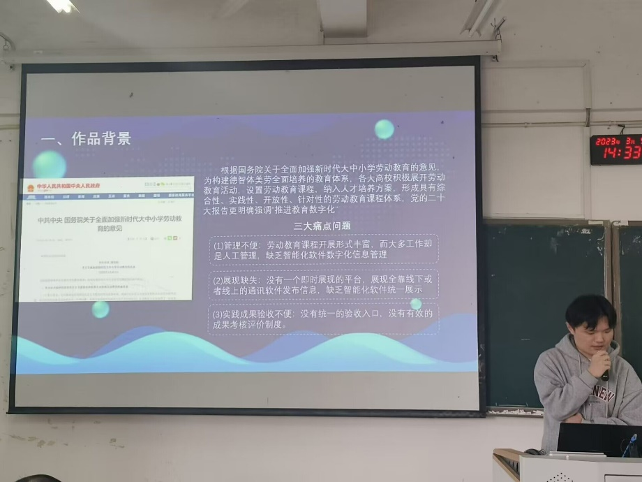 活动开始,首先由我院李金忠老师带领学生团队的劳动教养实践数字化管理与展示系统的设计与实践项目进行展示,陈建奇同学负责主讲。紧接着,由曾小芸老师带领的高速高精度智能无限摄影测量仪项目进行展示,高如桢同学负责主讲。之后,由曾劲涛老师带领的井冈蜜柚管理系统项目进行展示,由高子恒同学主讲。活动结束前,由评委老师对各项目进行点评,表扬优点,指出不足。