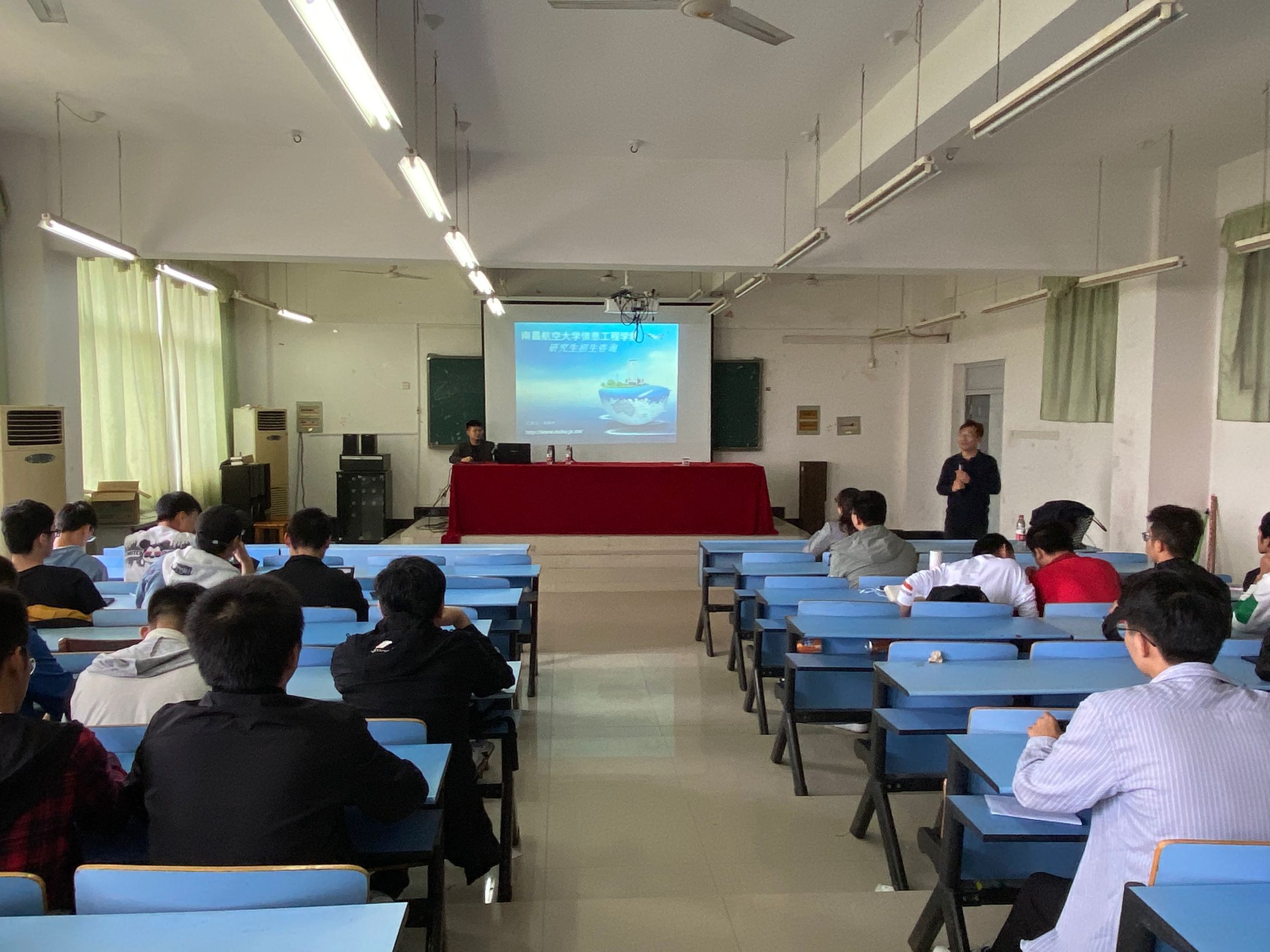 9月23日下午,南昌航空大学信息工程学院李其申、黄丽霞等一行人来我院作研究生招生宣讲,我院2017级考研学生参加了此次宣讲会。