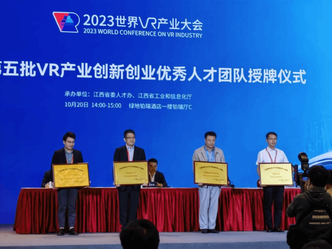 10月20日下午,江西省第五批VR产业创新创业优秀人才团队授牌仪式在南昌绿地铂瑞酒店举行。我校电子与信息工程学院冷明教授牵头的庐陵文化VR创新团队成功入选,并获100万元的项目资助经费。副省长夏文勇、省政府副秘书长熊科平、省工信厅厅长应炯、省委组织部副部长王亚青出席仪式。校长罗旭彪及团队成员参加了仪式,团队负责人冷明教授代表团队接受夏文勇副省长授牌。