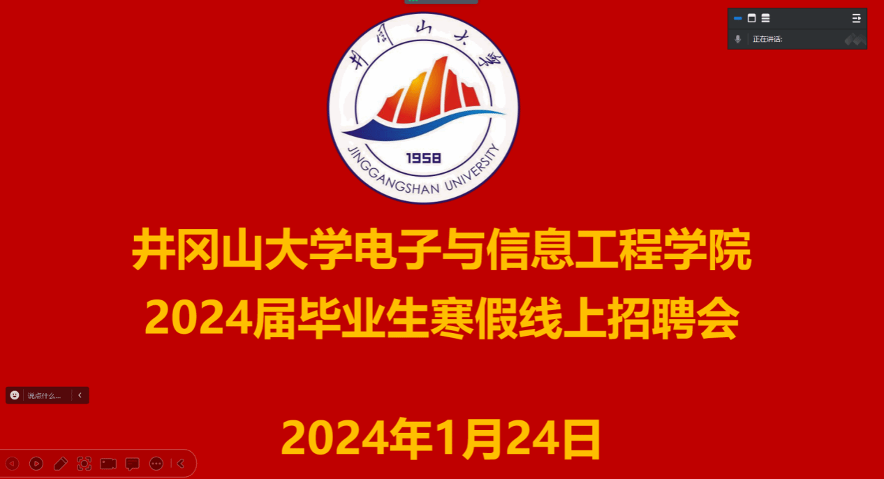 为切实有效的推动2024届毕业生就业工作稳步前进,为社会和企业输送优质毕业生,井冈山大学电子与信息工程学院于2024年1月24日晚上8点在腾讯会议举办了一场线上招聘会。学院党委副书记罗书嵩、学生科长李振昕和就业干事李悦参加本次线上招聘会。