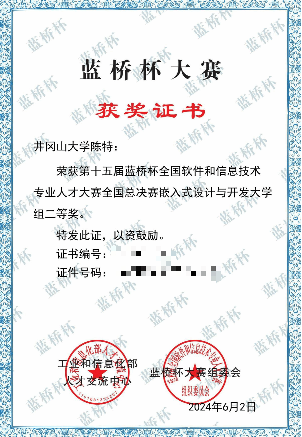 近日,第十五届“蓝桥杯”全国软件和信息技术专业人才大赛全国总决赛落下帷幕,我校电子与信息工程学院谭云兰、汤鹏杰、肖开选、刘宇安、曾小荟等老师指导的多位学生喜获佳绩,取得历史性突破。20级大数据专业2班的刘宇生同学凭借出色的表现,荣获国赛软件类一等奖,这是我校迄今为止在该项赛事软件类获得的最好成绩。此前,我校学子曾4次获得国赛电子类一等奖。本次总决赛还有贺杨、李智阳、郭江荣、陈特、王宇乐5位同学荣获国赛二等奖,吴传民、陈义路、吴彤、刘志祥、范嘉鑫等15位同学荣获国赛三等奖。