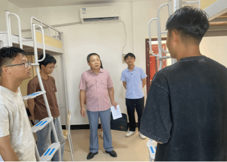 在学生宿舍里,院领导详细了解同学们的生活状况,关切询问新生步入大学的生活适应情况,耐心解答新生提出的问题。在走访过程中,院领导对宿舍的整洁环境给予高度评价,鼓励同学们保持良好生活习惯,营造和谐温馨的宿舍文化。