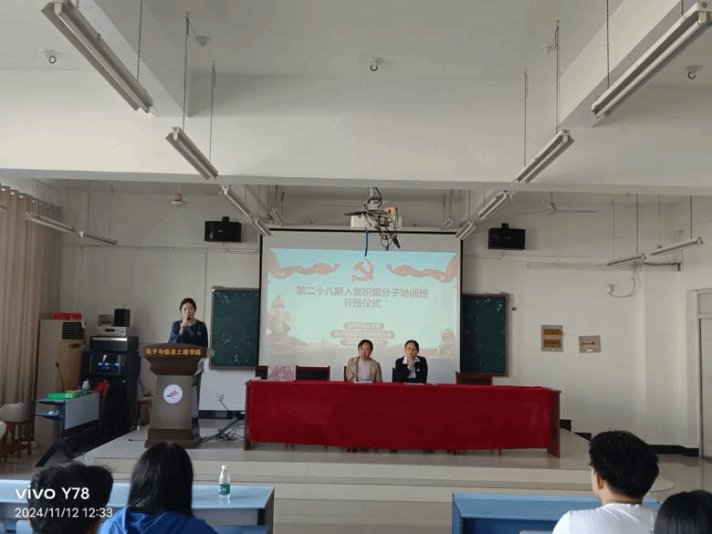 为学习贯彻习近平新时代中国特色社会主义思想和党的二十届三中全会精神,端正入党积极分子的入党动机,不断提高入党积极分子的思想政治素养和理论水平。11月12日,电子与信息工程学院举行了第28期入党积极分子培训班开班仪式。本期开班仪式由党委组织员张丹主持,学院党委书记黄郁南发表讲话,60余名入党积极分子共同参加。