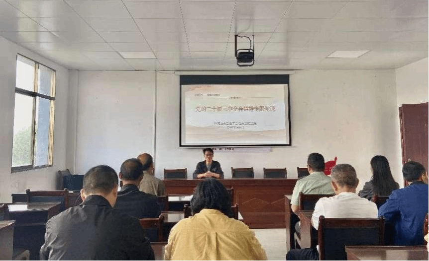 为深入学习贯彻党的二十届三中全会精神,进一步加强习近平新时代中国特色社会主义思想的理论学习,11月14日,电子与信息工程学院团委学生科副科长张有文为青原区菱塘村委党员讲授以“党的二十届三中全会精神”为主题的专题党课,菱塘村全体党员40余人参与聆听。