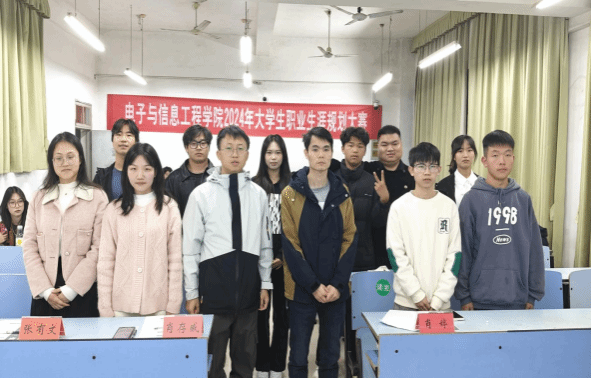 为了促进我院学生对未来职业的深入思考,提高大学生的职业规划能力,电子与信息工程学院于2024年11月26日在10栋B208组织举办大学生职业生涯规划大赛。我院学生科副科长张有文,专职辅导员肖存威老师、尹丹丹老师和张地秀老师以及团委学生会主席团成员肖婷担任本次大赛评委,曾世豪担任本次大赛主持人。
