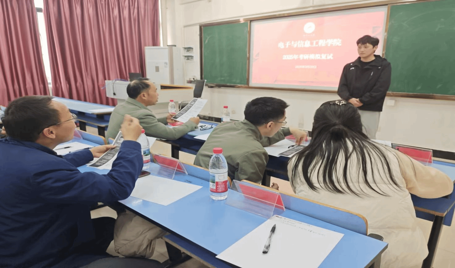为帮助2025届考研学子积累复试经验、提升应试能力、增强复试心理素质,电子与信息工程学院创新推出"经验传承+实战演练"双轨指导体系,在3月19日至21日,通过"云端经验共享+线下情景模拟"的立体化服务模式,为学院考研学子搭建起全真复试备战平台。