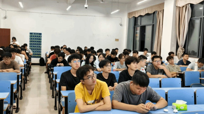 活动伊始,班主任首先进行主讲。他以就业市场需求与教育发展趋势为切入点,结合学院历年考研数据,从“如何科学择校选专业”“考研时间线与考试内容拆解”“本校报考优势”三大核心维度展开,着重强调考研与职业发展的深度关联,为学生搭建起考研认知框架。