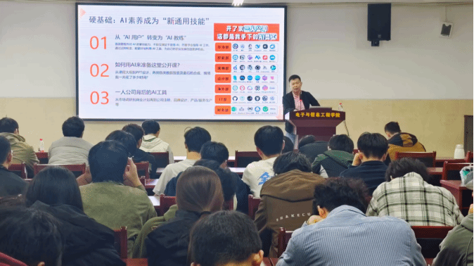 为帮助在校同学前瞻性地把握人工智能时代下的就业趋势与人才需求,明晰职业发展方向,电子与信息工程学院于2025年11月13日在27栋209教室成功举办校友讲座,学院党委副书记罗书嵩,团委副书记、学生科副科长张有文,专职辅导员尹丹丹,以及林长锦等多位校友出席本次活动。