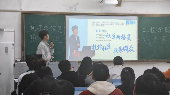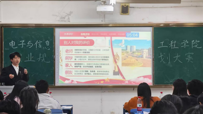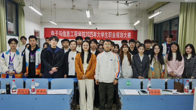 为深入贯彻落实高校生涯教育理念,提升学生的职业规划意识和综合竞争力,12月1日晚,电子与信息工程学院2025年大学生职业生涯规划大赛在10栋B208教室成功举办。本次大赛特邀学院学生科专职辅导员肖存威、尹丹丹、陈琦、张地秀老师以及团委学生会主席团成员徐顺薇担任评委,来自学院各年级的十余名优秀选手同台竞技,现场座无虚席,气氛热烈。