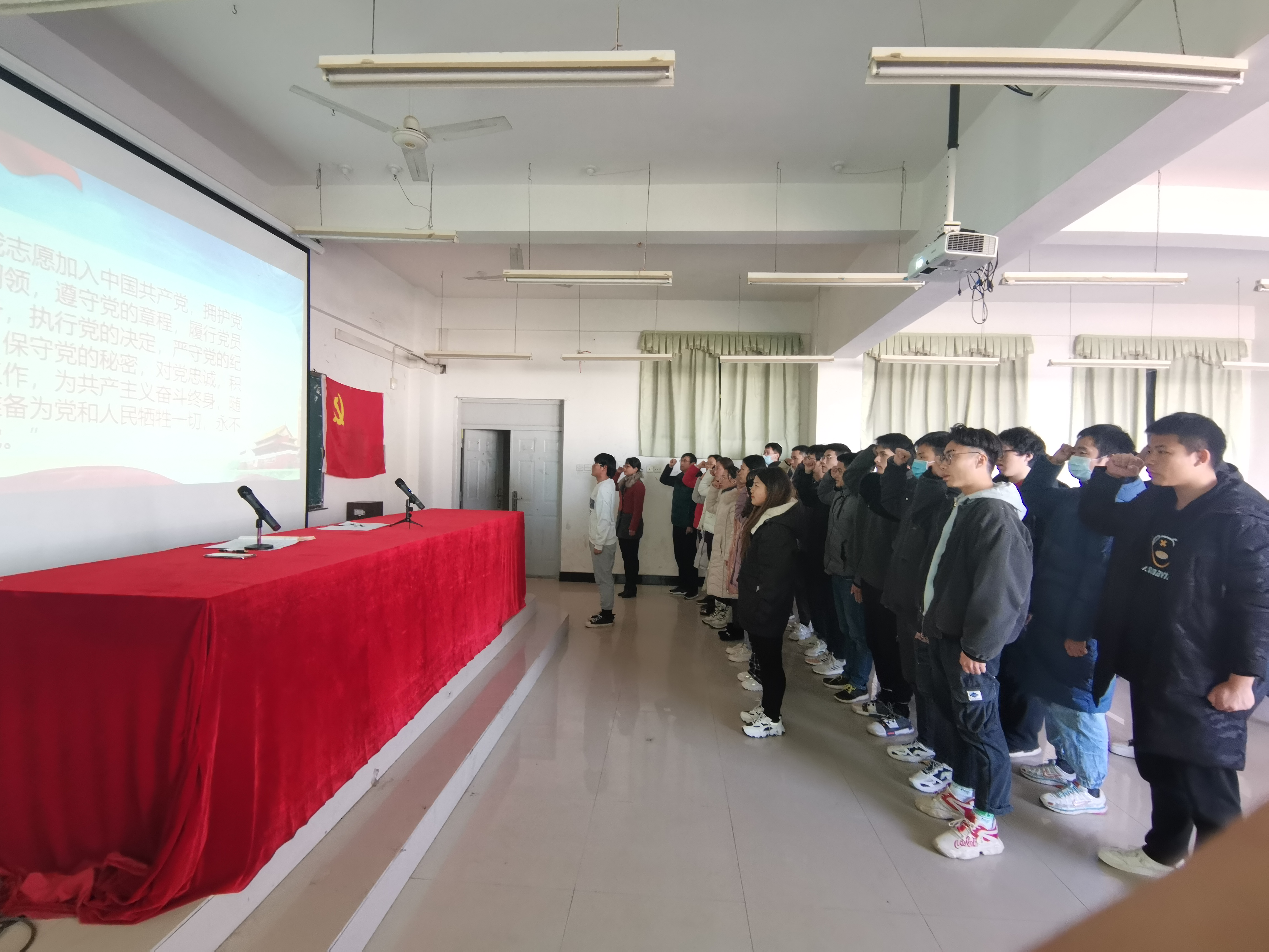 庄严肃穆的《国歌》拉开了仪式的帷幕。党委组织员张丹同志宣布了参加入党宣誓的28名预备党员名单,老党员施福蒿同志带领全体新老党员面向党旗进行庄严宣誓。随后新党员代表梁太川同志进行表态发言。他表明将会在以后的学习生活和工作中以共产党员的标准严格要求自己,为党的事业奋斗终身。党委书记黄郁南向参加宣誓仪式的预备党员表示祝贺的同时,也寄予了殷切厚望。她对全体党员提出了四点要求:一是恪守入党誓词,践守庄严承诺;二是加强党性修养,提升政治能力;三是发挥模范作用,积极争先创优;四是严格要求自己,自觉接受监督。黄书记还强调要以入党誓词作为自己的终身追求,早日成为国家建设的栋梁之才。