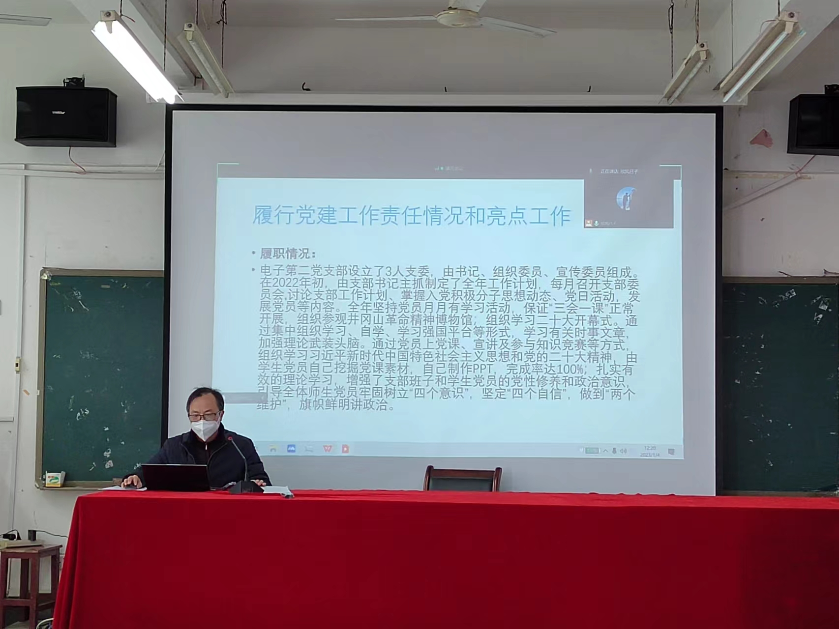 根据《井冈山大学2022年度基层党组织书记抓基层党建述职评议考核工作方案》要求,1月4日上午,电子与信息工程学院召开2022年度党支部书记抓党建述职评议考核会。学院党委书记黄郁南主持会议,全体党委班子成员和师生党员参加会议。