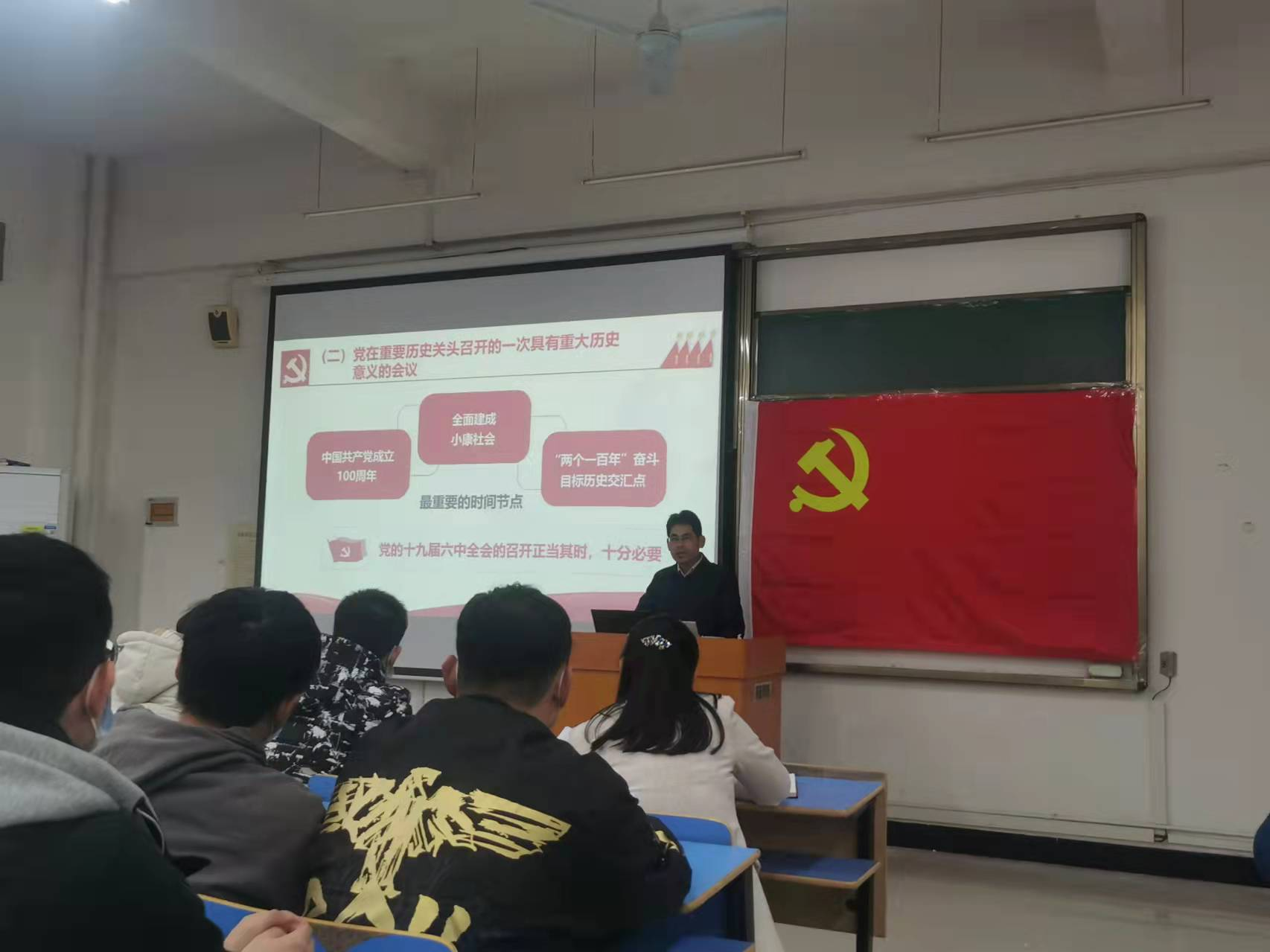 为推动党的十九届六中全会精神在基层走深走实,更加准确学习领会把握全会精神,12月16日下午,党委常委、副校长刘利民深入联系学院党委为学院党员师生宣讲党的十九届六中全会精神。 报告中,刘利民副校长从党的十九届六中全会召开的背景、主要内容、核心要义、重大意义以及学习贯彻江西省第十五次党代会精神等五个方面进行重点宣讲。他用详实的数据,为师生全面梳理了党的百年奋斗的重大成就,重点解读了《中共中央关于党的百年奋斗重大成就和历史经验的决议》的主要内容和核心要义,深刻阐释了党的百年奋斗的重大历史意义,引导师生从党的百年奋斗历程中汲取智慧和力量,以史为鉴、开创未来。刘校长还结合江西省的省情以及广大师生学习和工作的实际,重点解读了江西省第十五次党代会精神,对于推动学院高质量发展具有很强的指导意义。