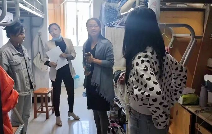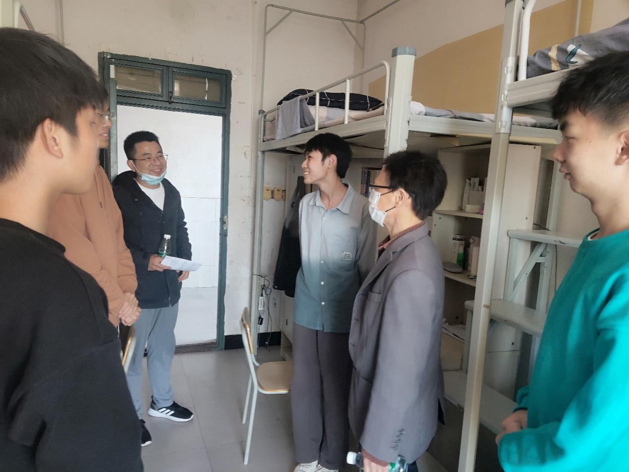 在新生宿舍,学院领导与来自五湖四海的同学们亲切交流,关切询问了新生的家庭情况、到校生活是否习惯、寝室相关设施能否正常使用等问题,耐心详尽地解答了新生的各种疑问,提醒同学们要警惕诈骗陷阱、疫情期间做好个人防护。学院领导鼓励新生尽快适应大学生活,尽快做好大学生涯规划,刻苦学习、从容面对大学的挑战。