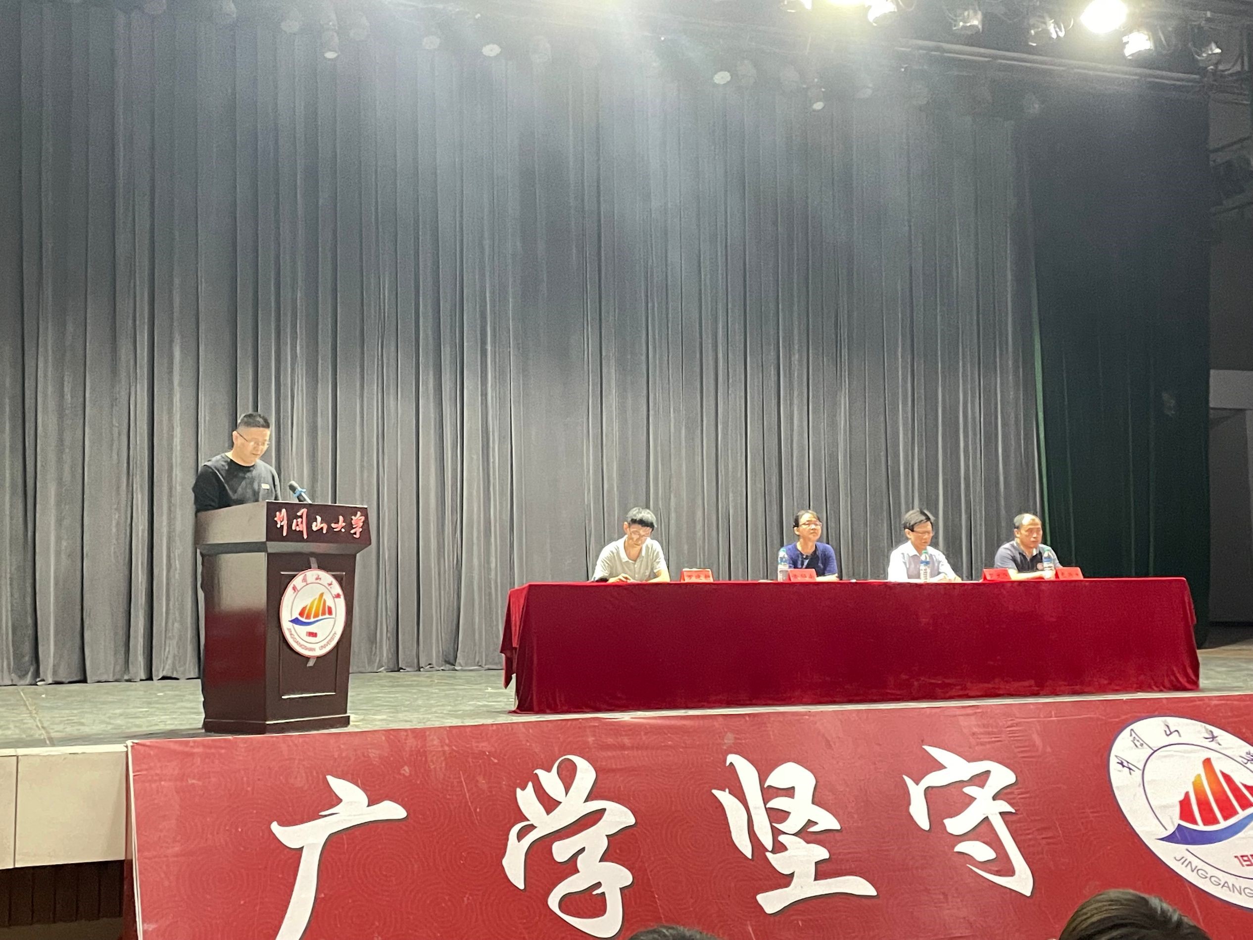 教师代表汤鹏杰、老生代表和新生代表依次作了发言。