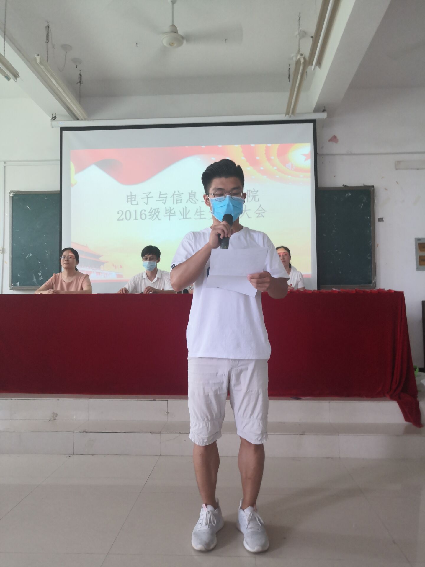 会议伊始,国歌响起,全体起立,全体党员一起奏唱国歌,在组织员张丹老师的带领下,重温入党誓词。电子工程系学生党支部刘湛印和信息工程系学生党支部周小倩代表全体毕业生党员发言,表达了对母校、师长的感谢,同时也分享了大学四年自己作为党员的内心成长经历。