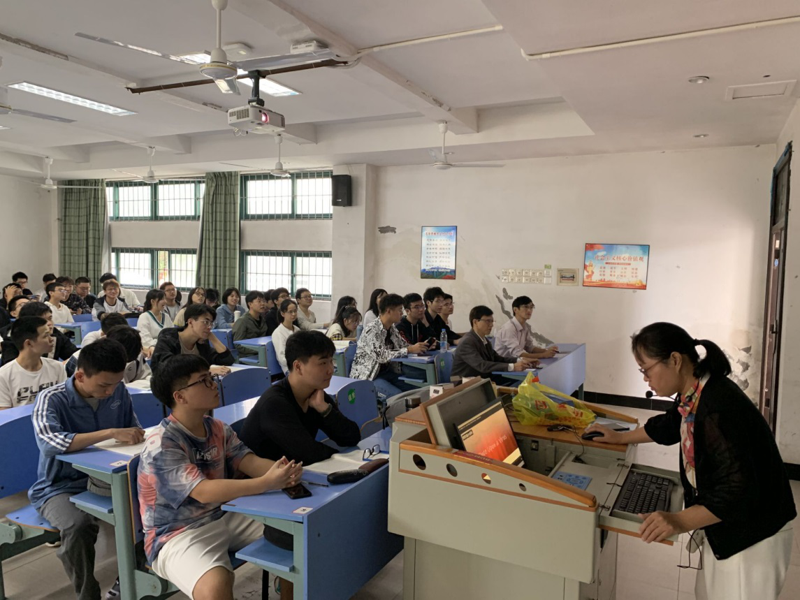 9月25日上午,电子与信息工程学院院长罗文浪、党委副书记万建新、19计算机本(1)(2)班全体学生百余人在9栋107教室共同聆听了马克思主义学院蒋媛萍老师讲授的《战疫—中国答卷》课程。