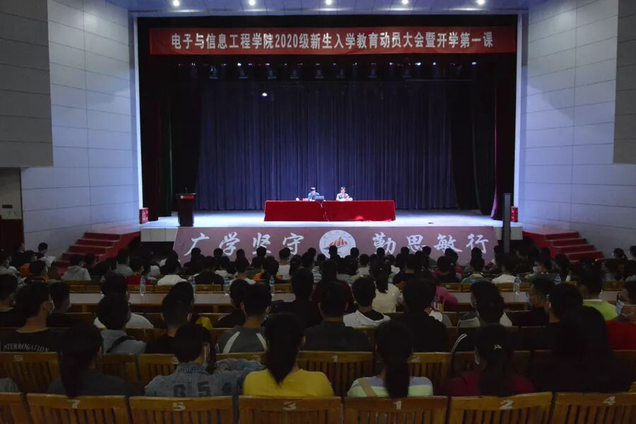 大会最后,院党委副书记万建新以祝贺、欢迎、期望、祝愿八字来表达学院对新生通过高考独木桥的祝贺;对新生到来的热烈欢迎;对新生尽快完成角色转换,适应大学生活的期望,对新生能够在井冈山大学电子与信息工程学院过的精彩充实的祝愿,结束了本次2020级新生入学教育动员大会。