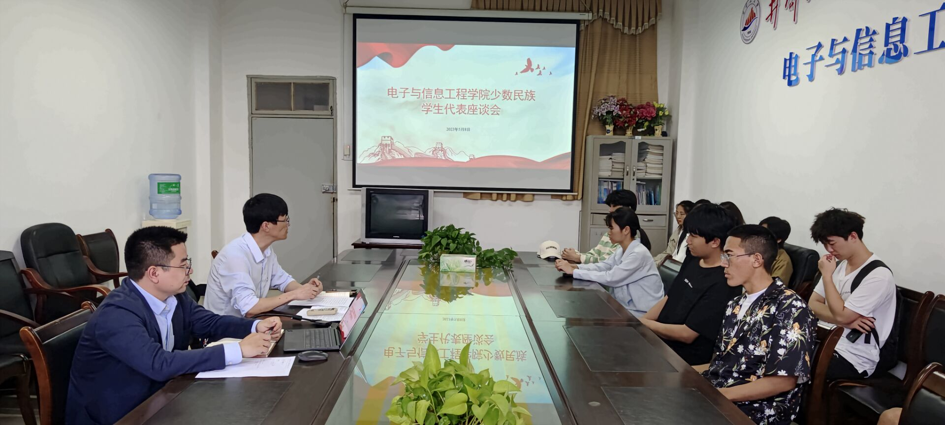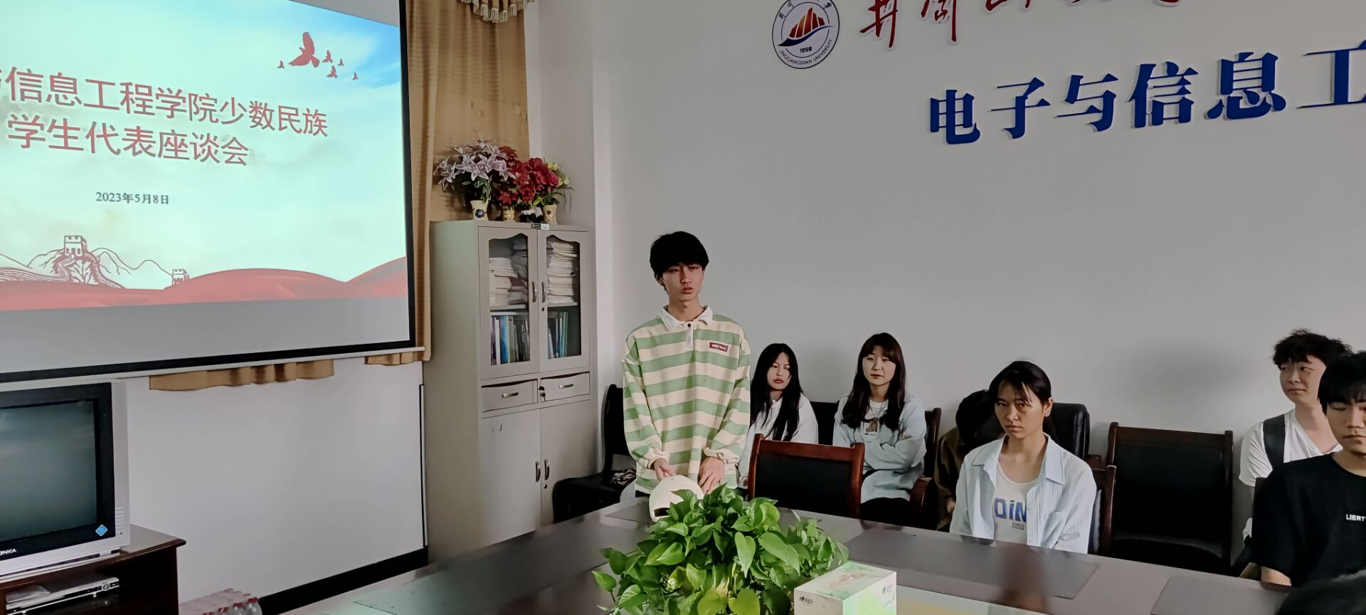 为学习贯彻党的二十大精神,扎实推进少数民族学生教育管理服务工作,进一步了解少数民族学生在校学习生活情况,帮助解决实际困难,促进学生成长成才,2023年5月8日下午,电子与信息工程学院在学院会议室召开少数民族座谈会。学院党委副书记万建新、院团委副书记李振昕以及22名少数民族学生代表出席座谈会。