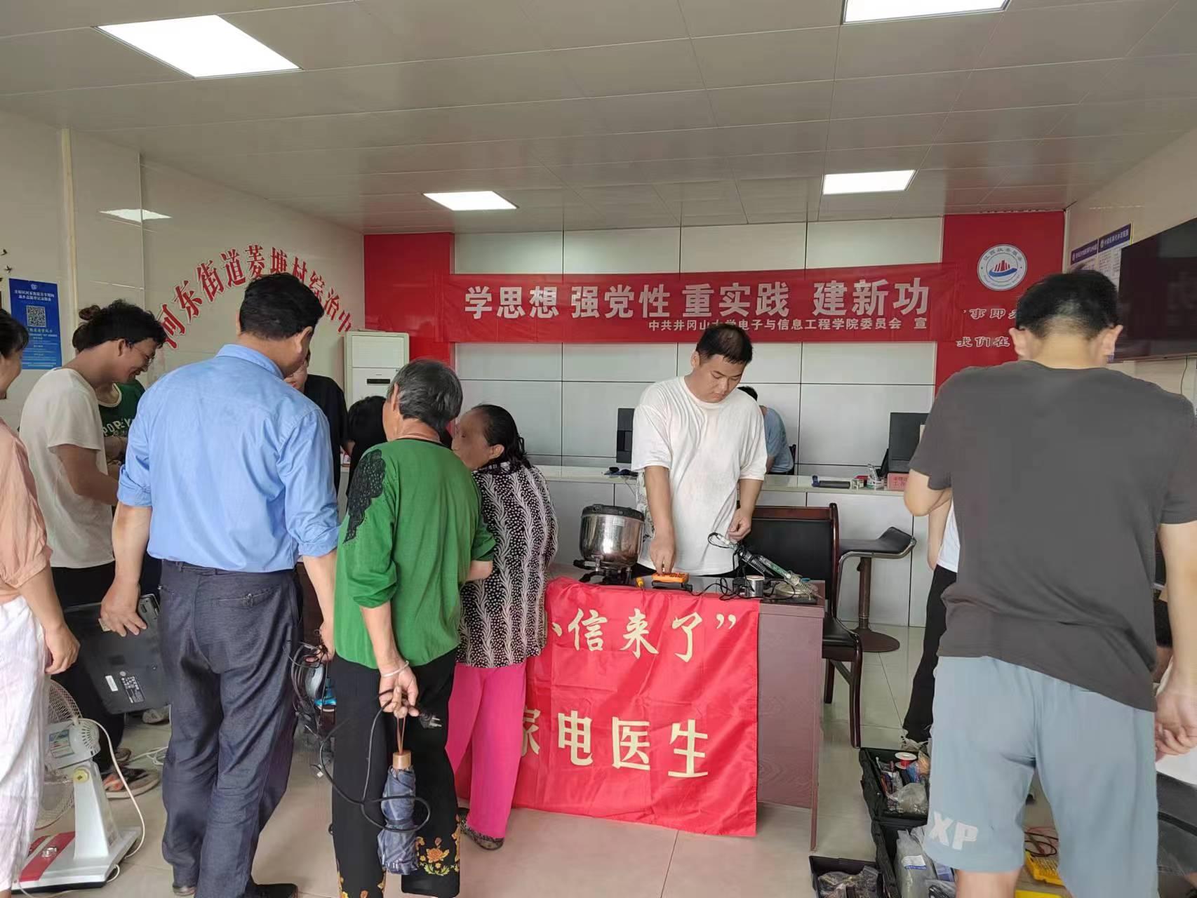 为深入开展学习贯彻习近平新时代中国特色社会主义思想主题教育,推进主题教育走深走实,深刻贯彻“学思想 强党性 重实践 建新功”的总要求,5月20日上午,井冈山大学电子与信息工程学院赴结对共建单位青原区菱塘村委开展“井小信来了——家电医生”义务维修志愿服务活动,电信学院20余名师生党员、入党积极分子和红芯班学员共同参加。